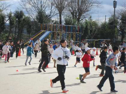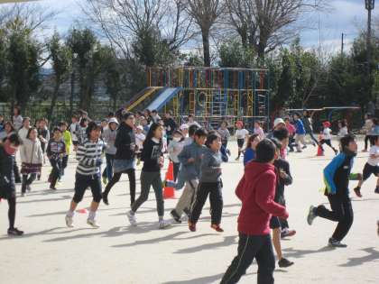 中間休みになると,さっさと運動場のそれぞれのスタートラインに並んでいました。
