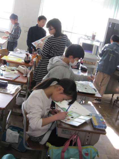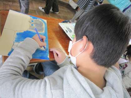 色を塗る子,やすりで回りをきれいに丸めている子とそれぞれのペースで自分のお気に入りのホワイトボード作りに取り組んでいました。