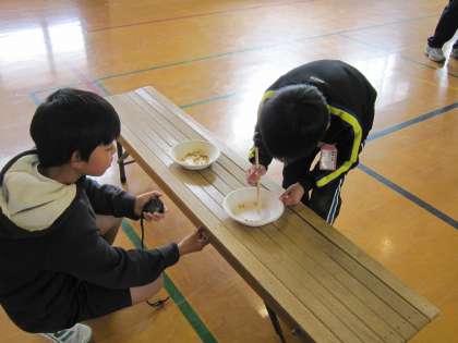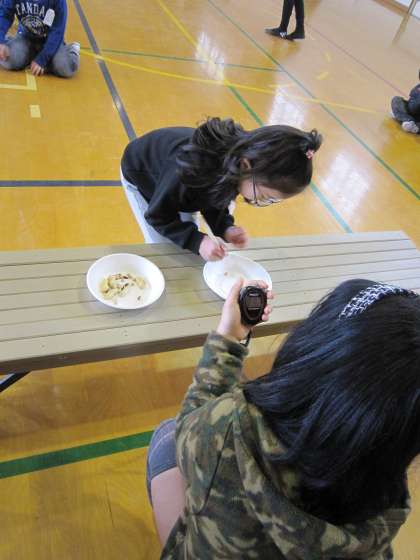 給食委員もタイム係をしながら,応援を送っているようです。