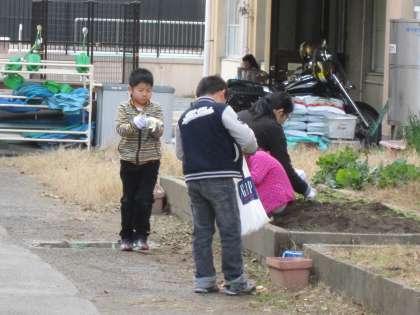 花壇では,草抜きをがんばる子ども達を発見。