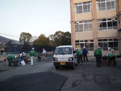 おはようございます。松尾橋の気温がマイナス1度になっていました。今日は「親子ふれあいもちつき大会」です。早くからPTA本部役員さんと少年補導のみなさんが準備に来てくださっています。この後9時半から始まります。おもちをいっぱい食べに来てくださいね。