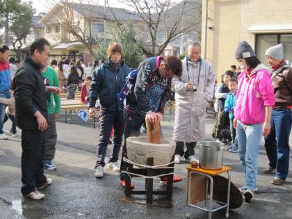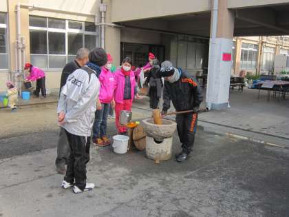 たくさんの子ども達が集まってきているので,つくのも大変ですが,おやじの会の方を中心にどんどんもちがつかれていきます。