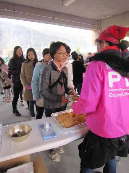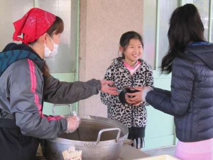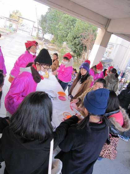 おもちや豚汁のコーナーには,子ども達が並び始めています。