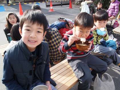 外でみんなと食べるおもち…こんなにおいしいものはありませんね。