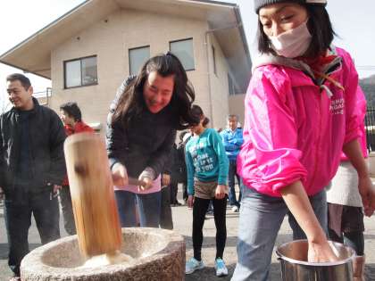 そう言えば,去年の「もちつき大会」は前日の雪が残っていて大渡り廊下の下でやったと記憶しています。
