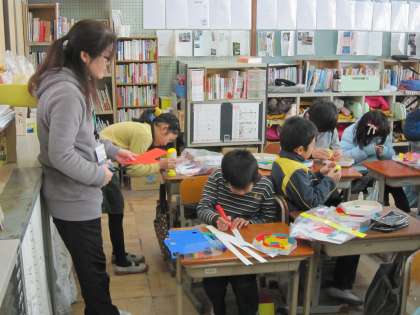 この図工の時間には,交流学習もしています。