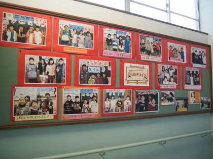 掲示板の模様替えをしました。昨日の「きらめきタイム」のチャレンジ大会仕様です。