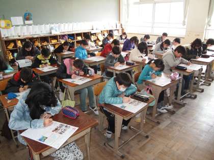 5年2組は「情報化された私たちの生活」のテスト中です。