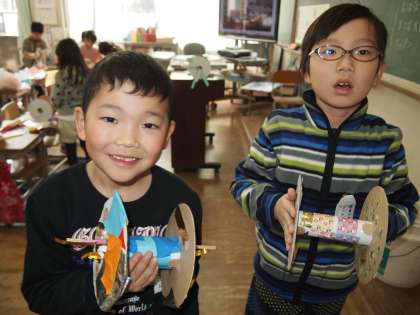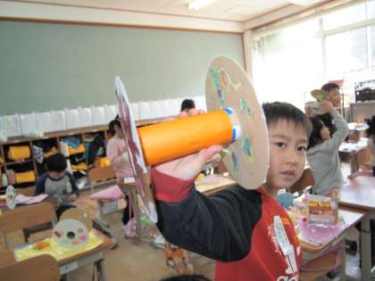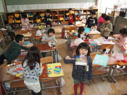 「かざりをつけて きれいにしましょう」と黒板に書かれていました。きれいに作れたかな?