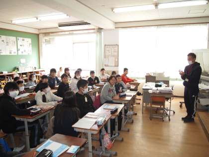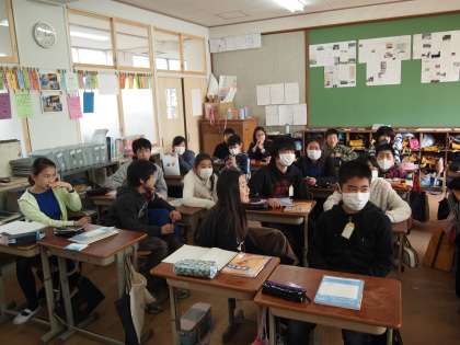 6年1組です。みんなニコニコしながらも妙な緊張感が漂っていました。「何やってんの?」と尋ねたら,今度の参観授業でやるスピーチの順番キメをカードで引いているそうです。お子達が帰られましたら「何番目に発表するの?」と聞いてあげてくださいね。