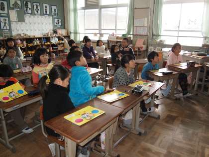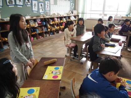 3年2組は「安全」の時間です。今日は踏切の渡り方について確認し合っていました。黒板に先生が描いたふみきりの絵が面白かったようです。まぁ,大切なことは理解できたのならいいですが…。