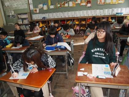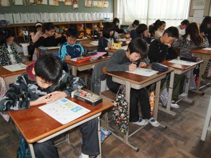 5年1組です。「もののとけ方」のテストに向けて「たしかめプリント」に取り組みました。