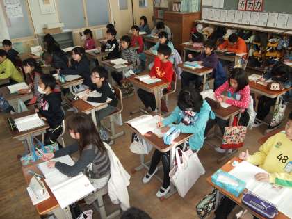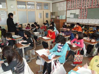 4年1組は国語「聞き取りメモの工夫」です。「メモをとる」というのは案外難しいようにも思えます。説明されたことを全部書き出すのではなく,大切なことだけを取り出したり,自分なりのフィルターを通してメモにしていくためにはそれなりの訓練が必要です。