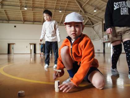 「おじゃみ」「だるま落とし」「羽根つき」…どれも子どもたちには新鮮です。
