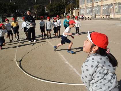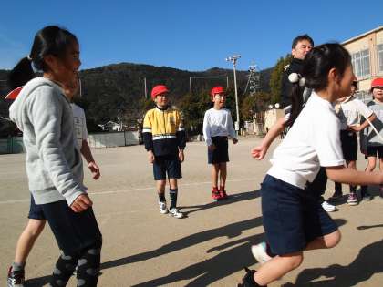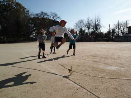 2年1組です。久しぶりの青空の下で大縄跳びをしました。