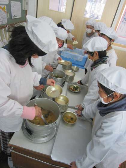 2年1組の給食当番の様子を見ていると,もうすぐ3年生というだけあってテキパキとしているなあと感心しました。