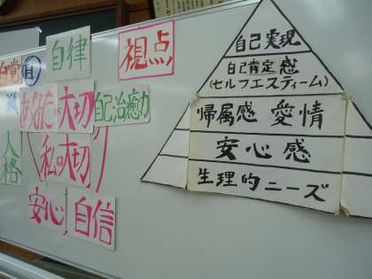 コミュニケーションで一番大切なことはなんだとお思いですか?……それは「あなたが大切」だと思う気持ちを伝えることだそうです。考えれば当たり前のことかもしれませんが,それが根本ですよね。絶対に忘れないようにしたいと思いました。他にもいろんなことが心に残りましたが,先生の軽妙なお話とワークショップの面白さもあって充実した2時間になりました。お話を聞いた後はみなさん心が軽くなって気も楽になられたと思います。森崎先生どうもありがとうございました。