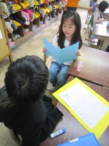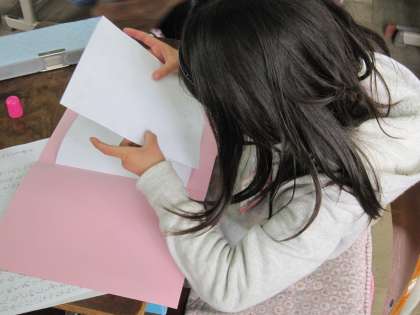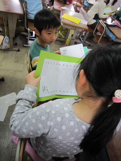 2組では,書いた手紙を友達と読み合っていました。