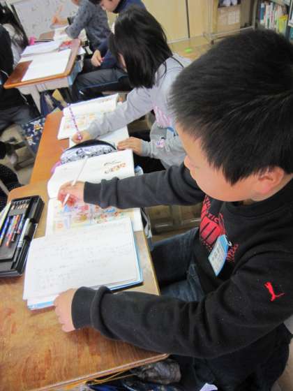 教科書に載っている漢字を使って文づくりに取り組んでいました。