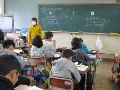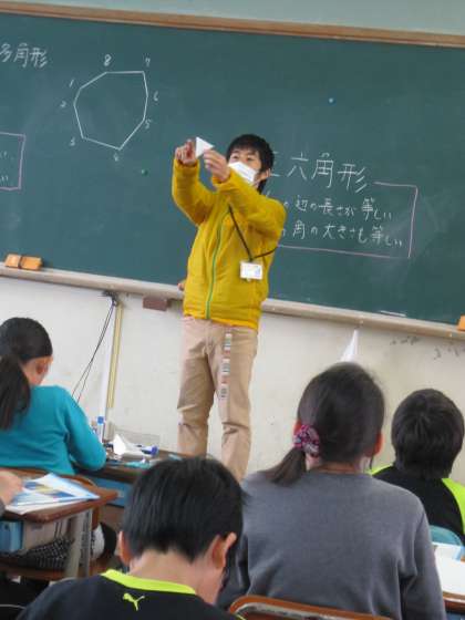 5年2組では,算数で「円と正多角形」の学習をしていました。