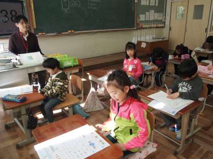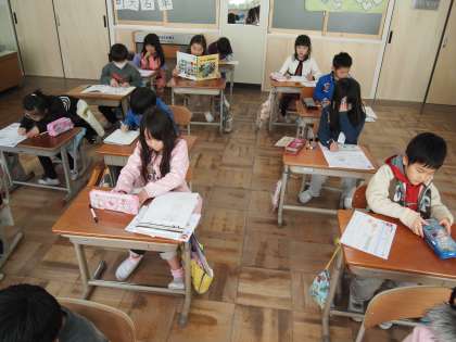 1年2組は算数「おおきいかず」のテストです。まちがいなくできたかな…?
