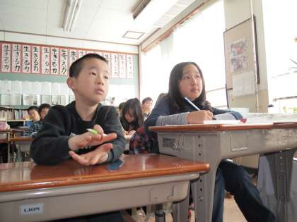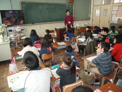 4年2組は社会です。「宇治茶の作り方」をテレビを見ながら学んでいます。