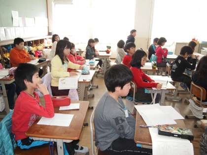 4年1組です。国語で「聞きながらメモを取る時は」の学習でした。「聞きながら…」というのはなかなか子どもにはハードルが高いのです。でも,どんなことに気を付けたらいいのかをしっかり押さえておけばあとは慣れの問題かもしれません。
