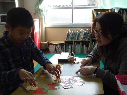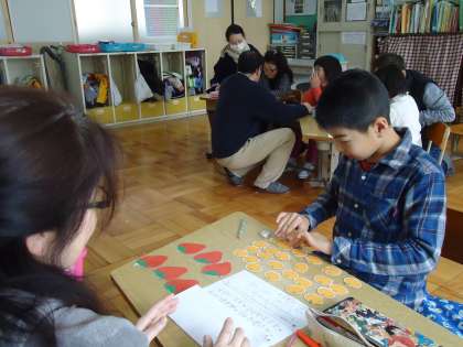 問題を頭の中で考えたり.みかんやりんごのイメージ図を使ったり…。最後まで根気よくやっていましたね。「100点」をとってほめてもらう人もいましたよ。