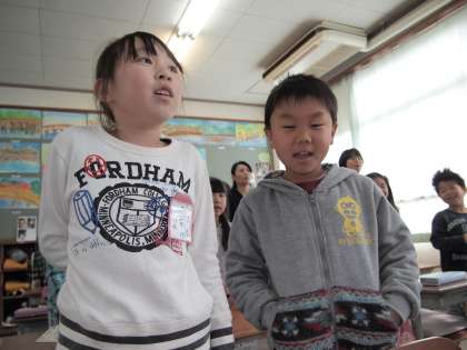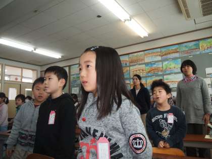 2年2組です。「はじめのいっぽ」という歌を歌いました。この1年を振り返るためだそうです。