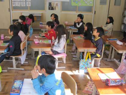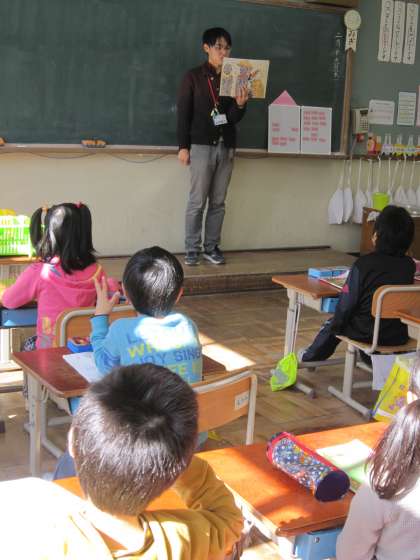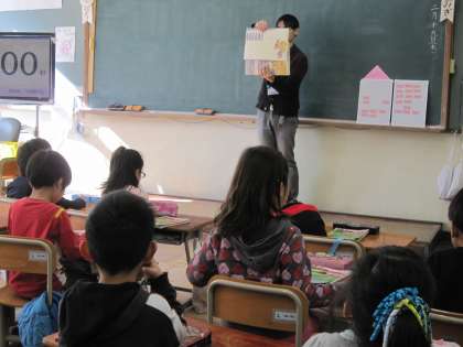 1年2組では,「かさこじぞう」の紙芝居をしていました。
