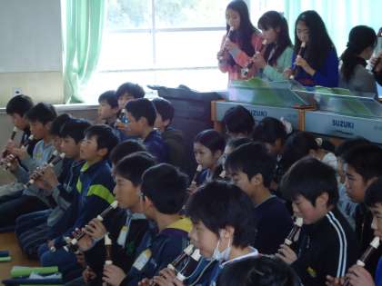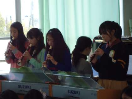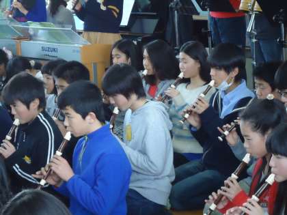 3曲目はリコーダ演奏で『カノン』,真剣にリコーダに向かう子どもらの表情が美しい!
