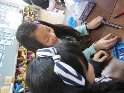 今日は,「磁石の極同士を近づけるとどうなるでしょうか」という課題をもって実験をしていました。