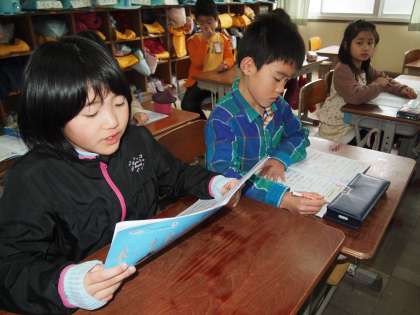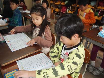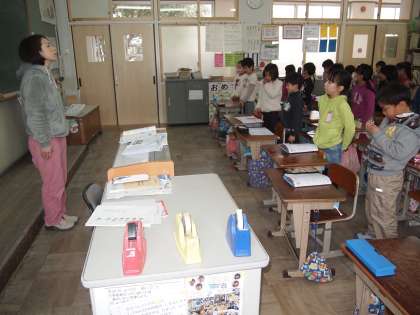 2年2組はこれから算数のドリルの答え合わせが始まります。「○○さん,いい姿勢ですね。じゃぁ答え合わせをどうぞ…」でスタートしました。