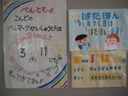 校舎を歩いていていつも感心することがあります。この写真のように,パタポンやベルマークの回収の次回予定の日がちゃんと表示されていることです。