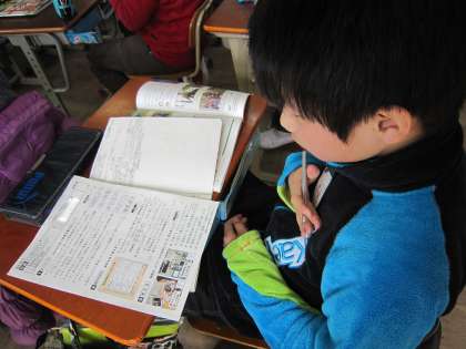 5年2組は,社会の時間にこれまでの学習をふりかえるプリントをしていました。