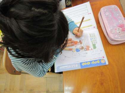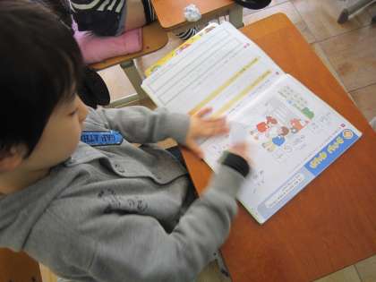 1年2組では,テストのあとに漢字の練習に取り組んでいました。