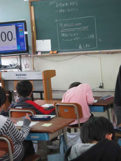 今日は,「3年生に向けて」というめあてをもって,「今私は〜〜〜なので,3年生になったら〜〜〜ように〜〜〜します。」という例文をもとに3年生になった時に頑張ることを考えていました。