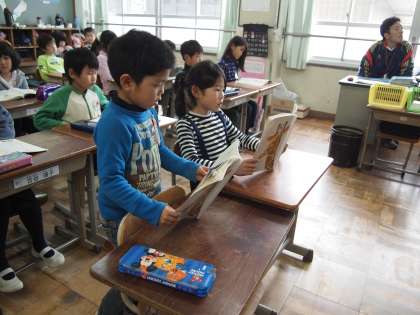 2年1組です。『スーホの白い馬』には様子を表す言葉がたくさん出てきます。それを使って文章を考えました。