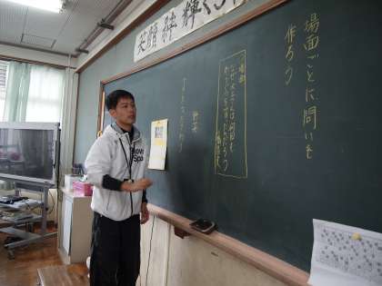 5年1組は国語『わらぐつの中の神様』で,場面ごとに問を作ろうとしているところです。
