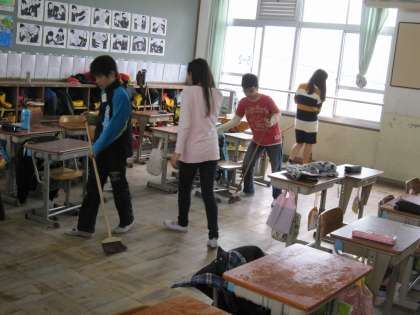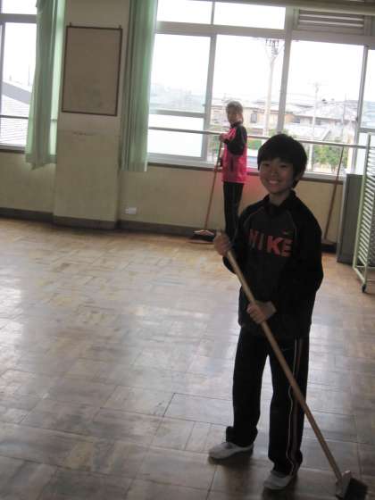 教室や廊下,階段を丁寧にはく子たちがいました。