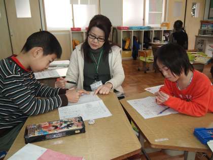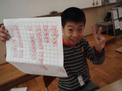 あおぞら学級です。今日はたくさん花丸をもらったプリントを見せてもらいました。すごいなぁ〜。