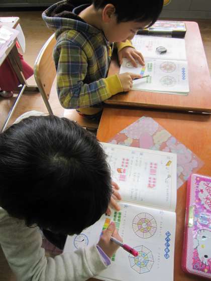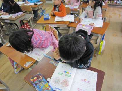 1年1組では,算数の時間にこれまでに学習したことの復習をしていました。