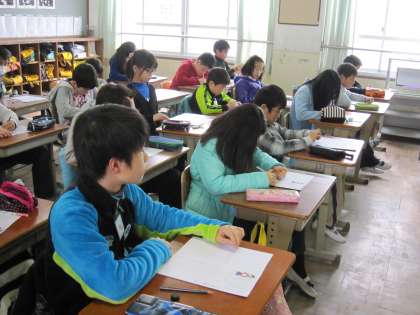 5年2組では,子ども達がテレビから聞こえる声に耳を澄ませていました。