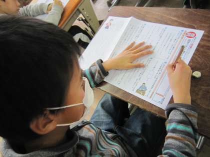 お話を聞く時間が終わり,聞いたことをもとに問題を解いていきます。