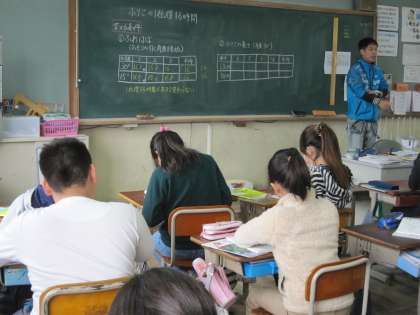 5年1組では,「ふりこ」について実験をしながら学習しています。