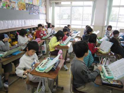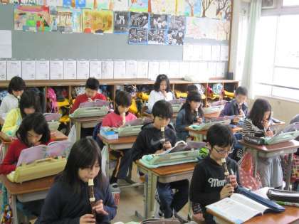 4年1組では,「ラ クンパルシータ」という曲の練習をしていました。