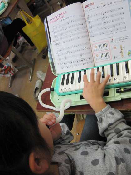 鍵盤ハーモニカやリコーダーで演奏していきます。