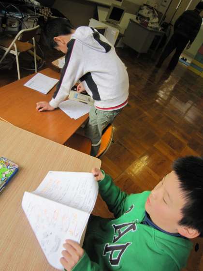 4年生の2名は算数の学習を,3年生は,歌の練習をしていました。