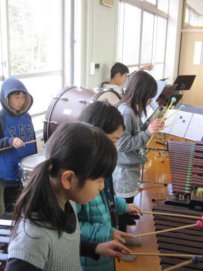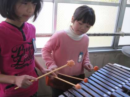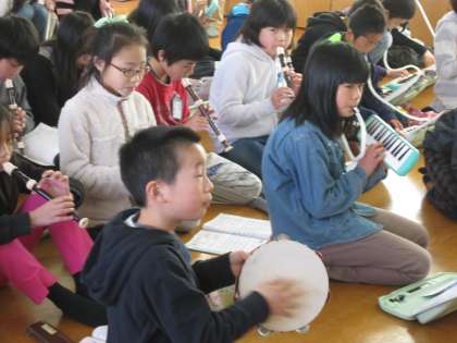 小太鼓・木琴,タンバリン,リコーダー,鍵盤ハーモニカなどのパートに分かれて,学年で演奏します。