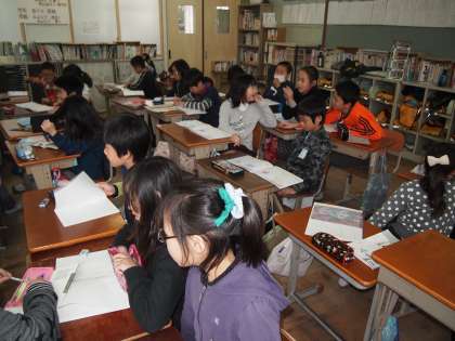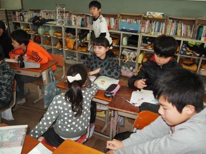 4年2組も準備の時間です。算数が終わって次の用意を始める子どもたちです。